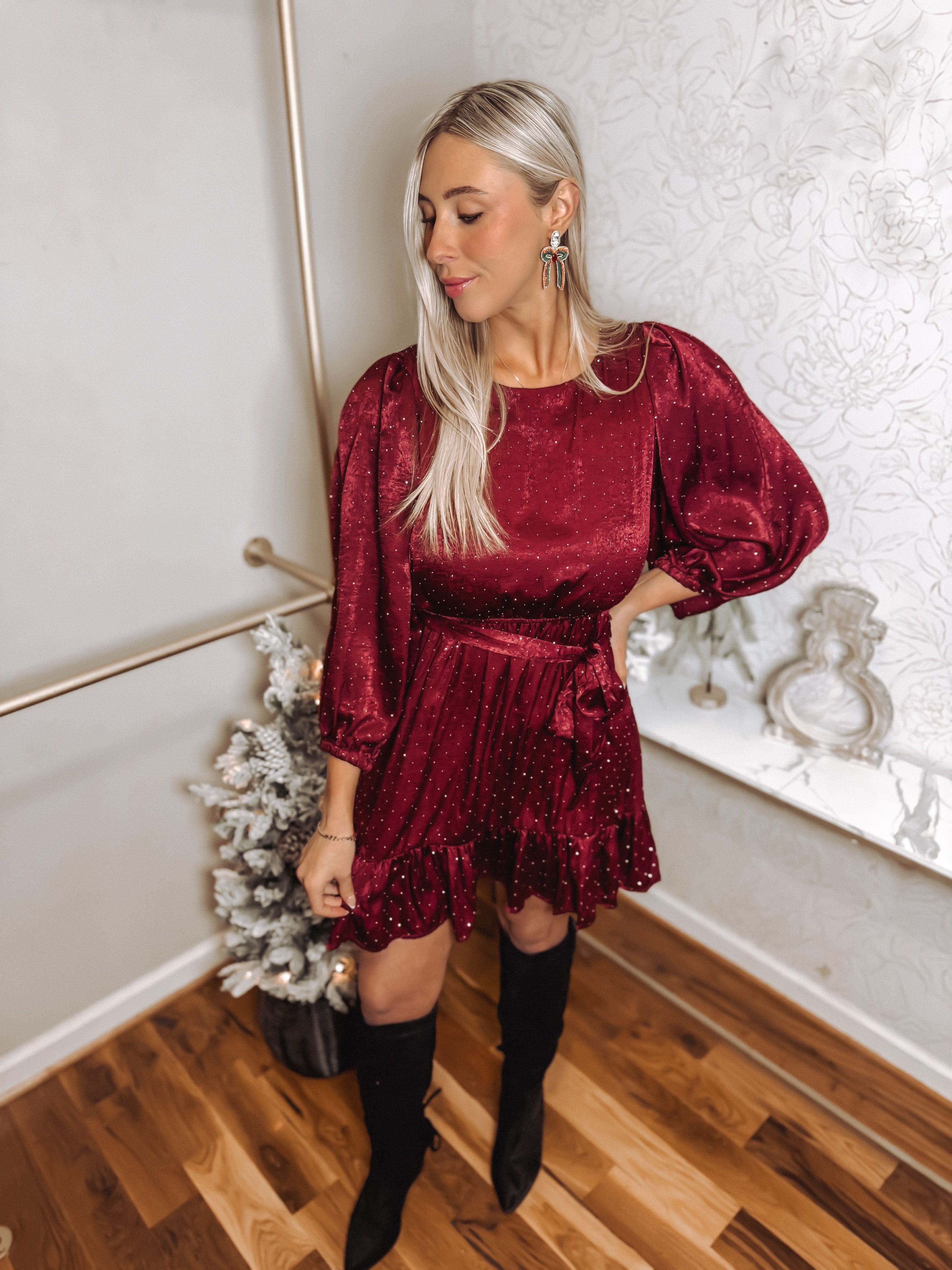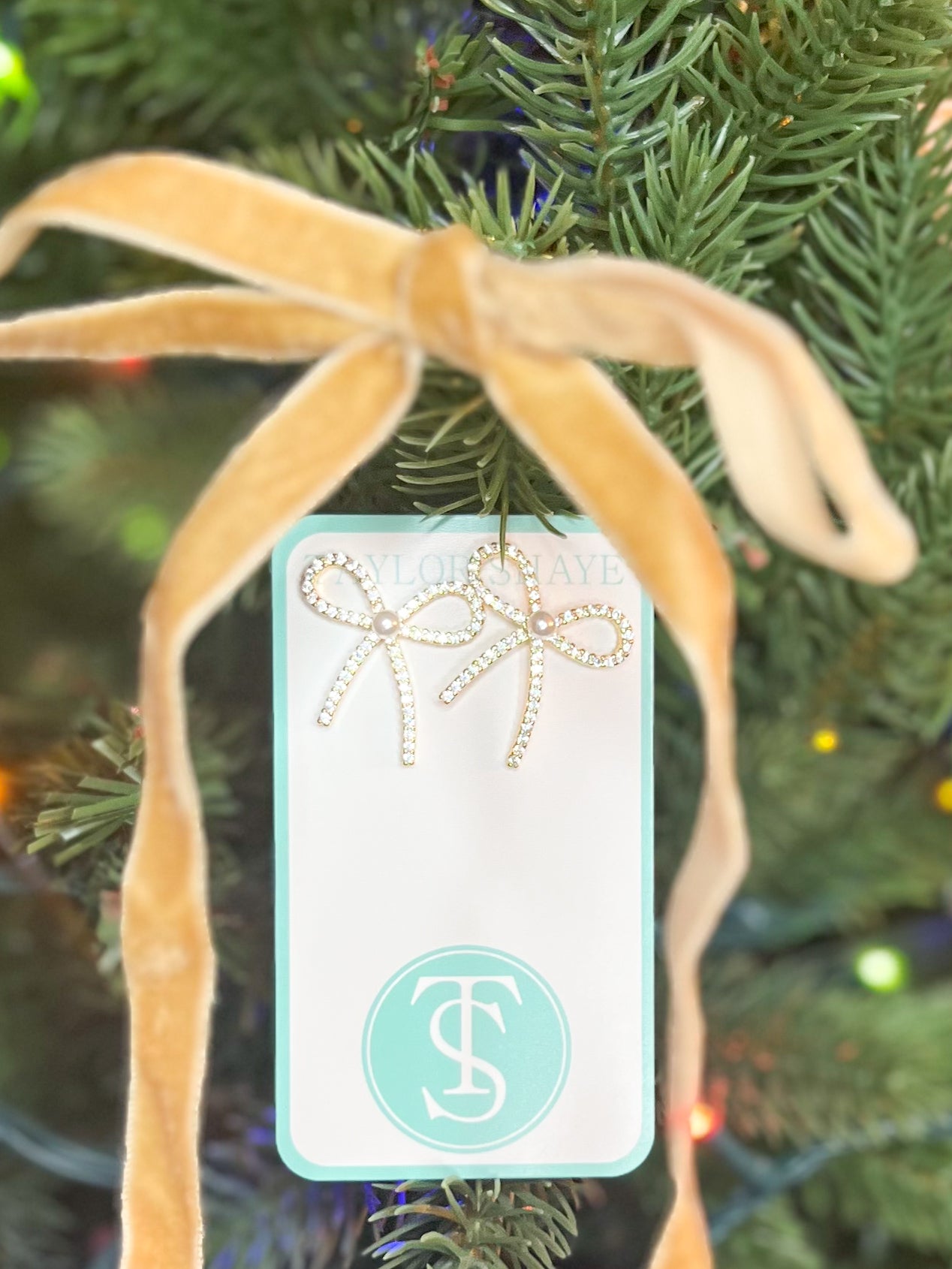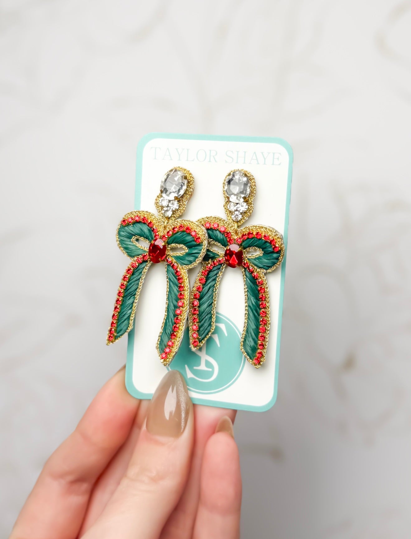 Beaded Christmas Bow Earrings